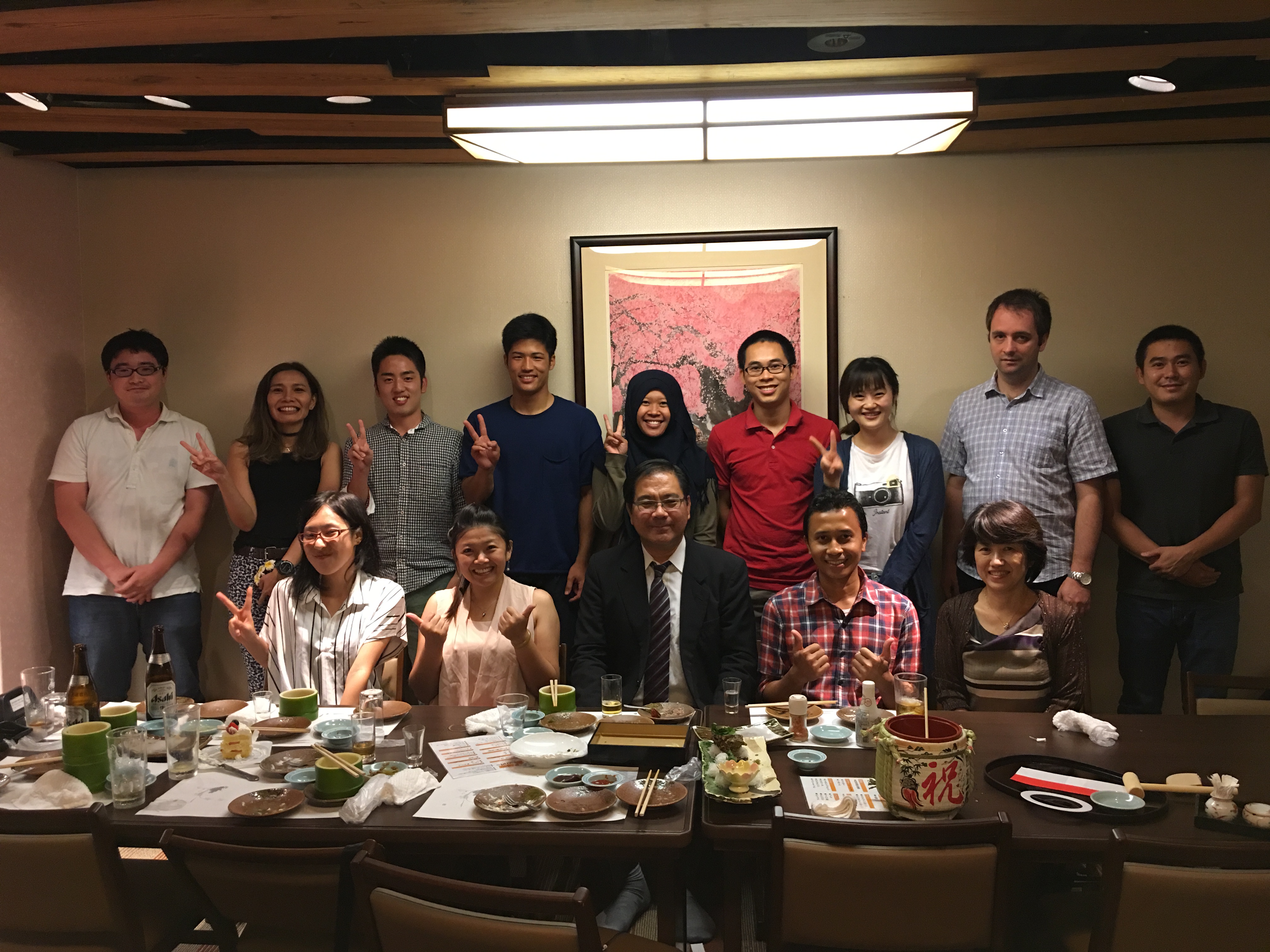 We held a farewell party on 31 August, 2017 for Hendy-san and Khailin’s san. And we also held the Otsukare party for Togashi-san and Matsumoto-san for their hard working on entrance examination. At the same time, we celebrate the birthday party for Inoue-san, Tien-san and Togashi-san whose birthdays are in July, June and August. Congratulations~~
