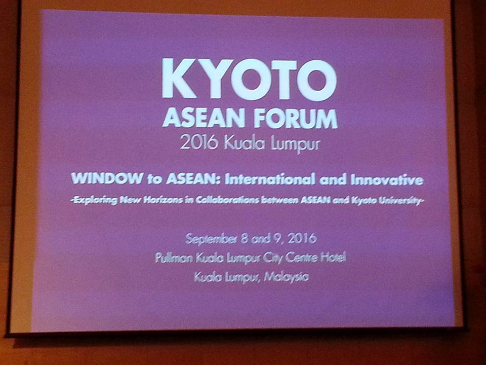 Takara sensei and Ms. Khai Lin attended Kyoto – ASEAN Forum 2016 on the theme of “WINDOW TO ASEAN: INTERNATIONAL AND INNOVATIVE” – EXPLORING NEW HORIZONS IN COLLABORATIONS BETWEEN ASEAN AND KYOTO UNIVERSITY – which held in Pullman Kuala Lumpur City Centre on 8th – 9th September 2016. This forum was a great success, over 250 participants attended the forum. This forum brings together researchers, young researchers and young students which the aim to improve capabilities on their research, through the sharing of knowledge, experience, and wisdom.